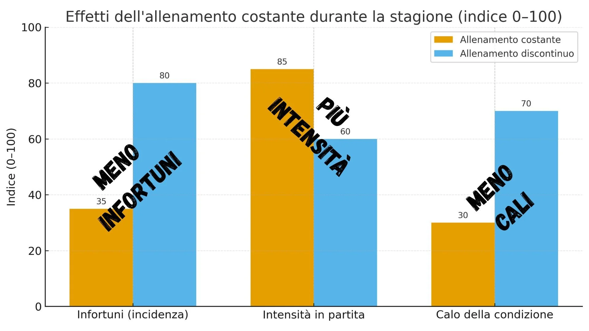 ✅ Carico progressivo ma sostenibile, per prevenire infortuni e arrivare freschi in partita